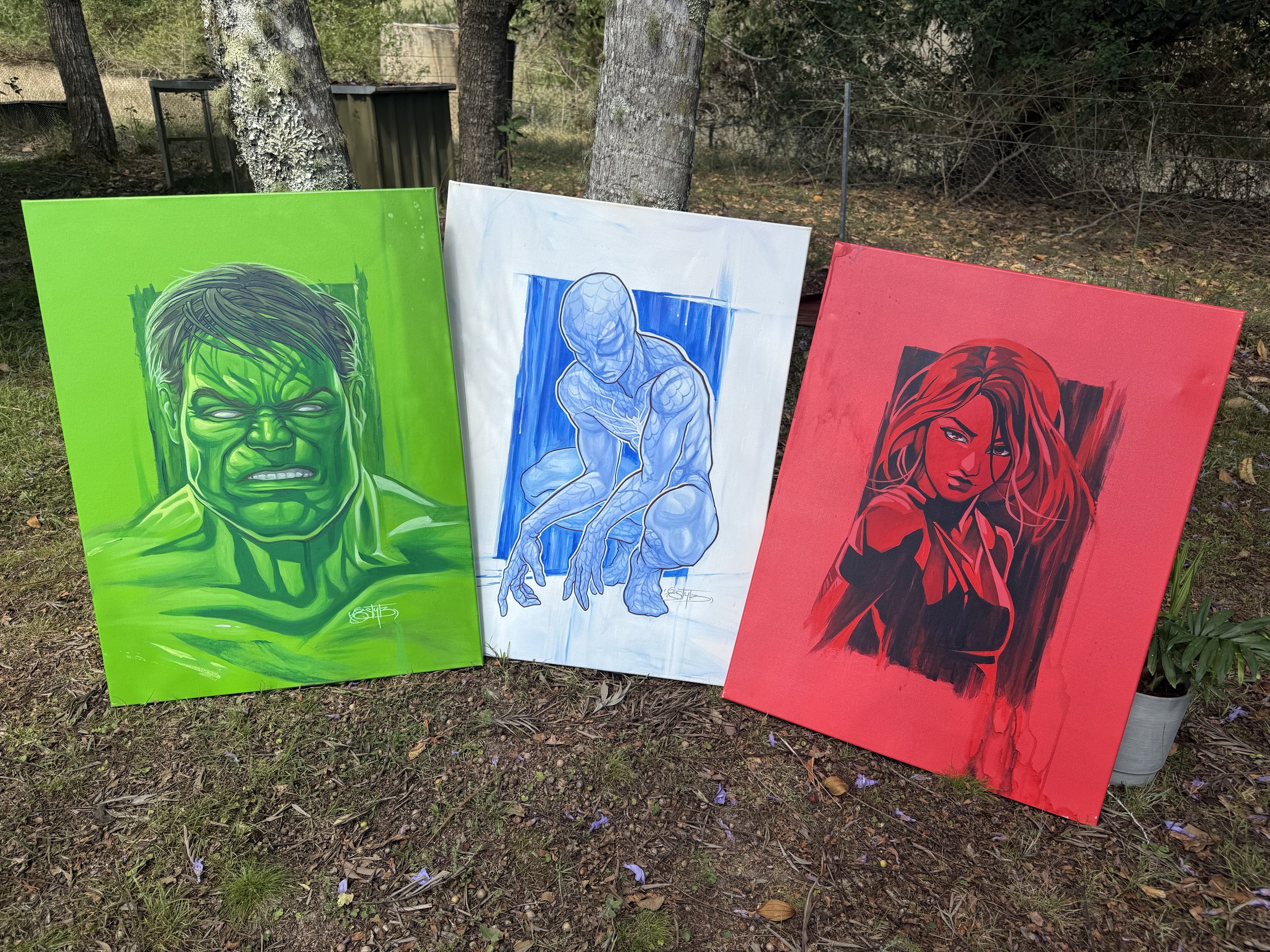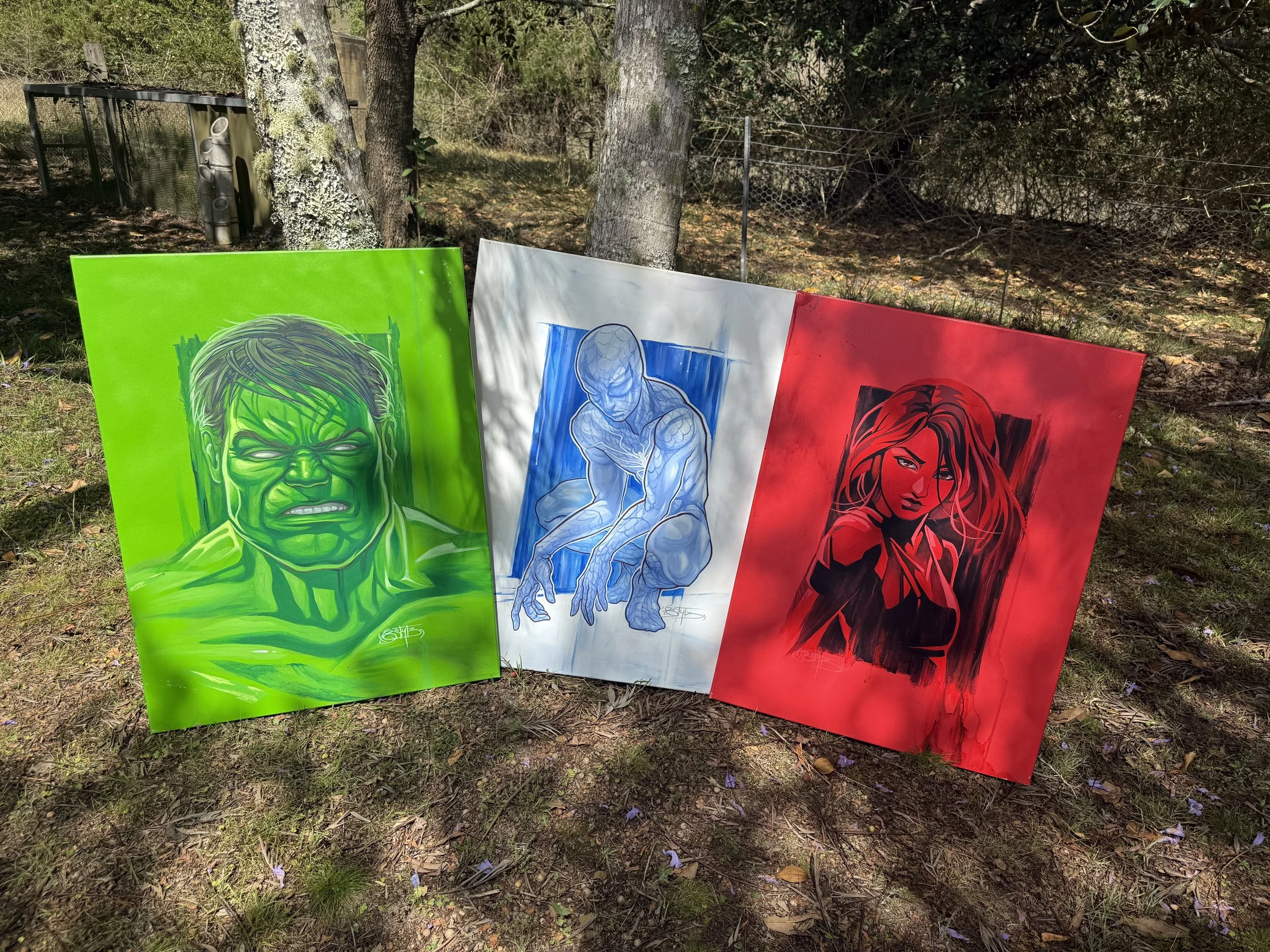 A Trio of Original Marvel-Inspired Acrylic Paintings