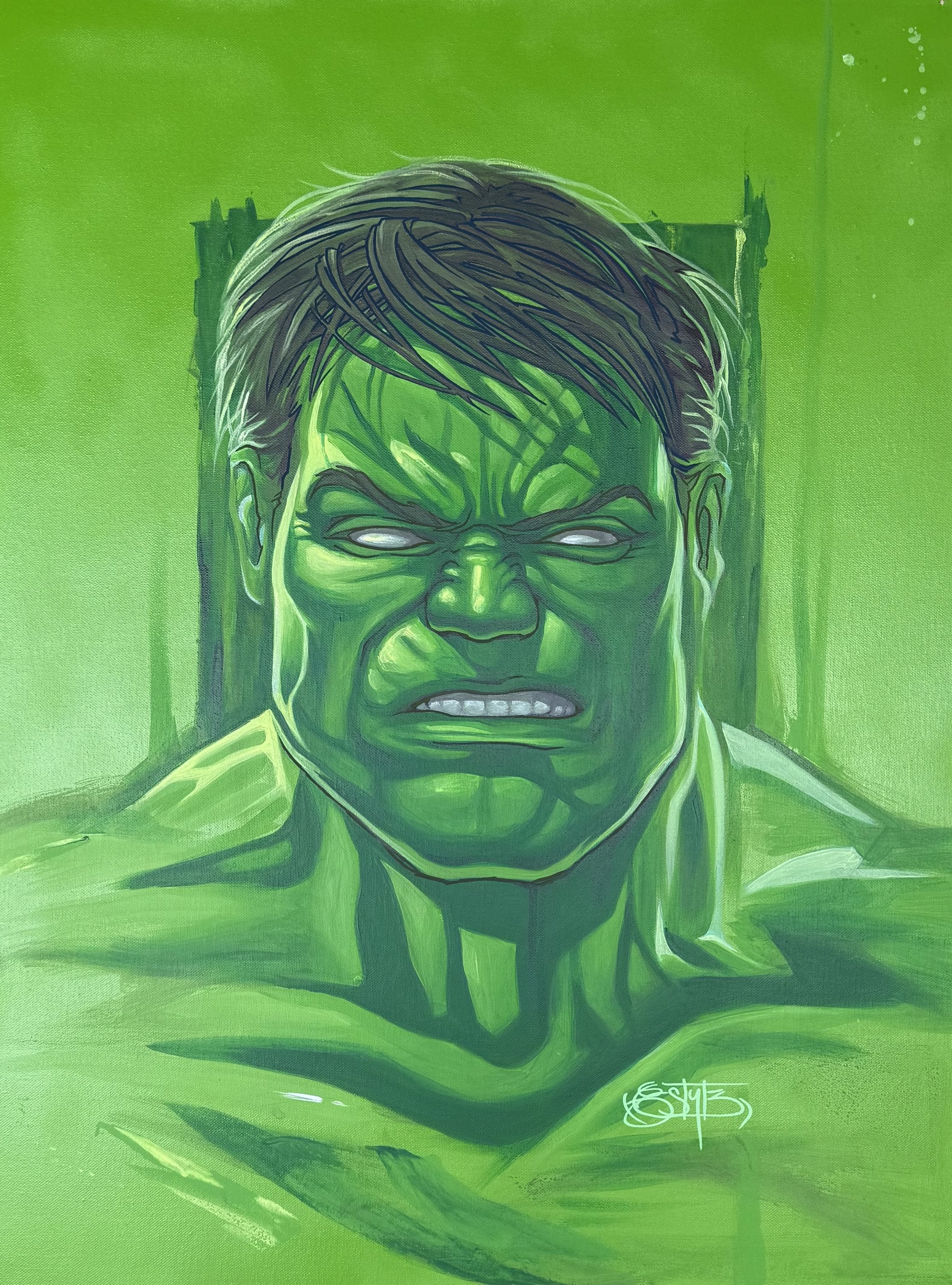 This collection brings together three iconic Marvel heroes — The Incredible Hulk, Spider-Man, and Black Widow — each captured at a defining emotional frequency rather than through mere likeness. Painted in bold, contemporary acrylics and framed within classic comic-book aesthetics, the series explores the inner worlds that make these characters legendary: their tension, grit, humanity, and quiet resilience.